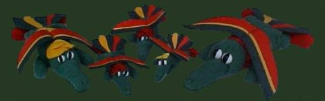 The Hummingators© Complete Set Includes five plush, multi-colored Hummingators©. Each Hummingator© is made with great attention to detail. The largest is 'Bubba', who measures 12 inches in length, and 9 inches wide from wing-tip to wing-tip. The smallest is 'Baby Mi-Mi', who measures 4-1/2 inches in length. Each Hummingator© is numbered, and comes with a name tag of authenticity. |